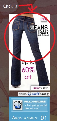 Last but not least, once you finish reading my blog, please help me to click the nuffnang ads on your right hand side of my page. your click is much appreciated. Thank you. The ads will look like:
